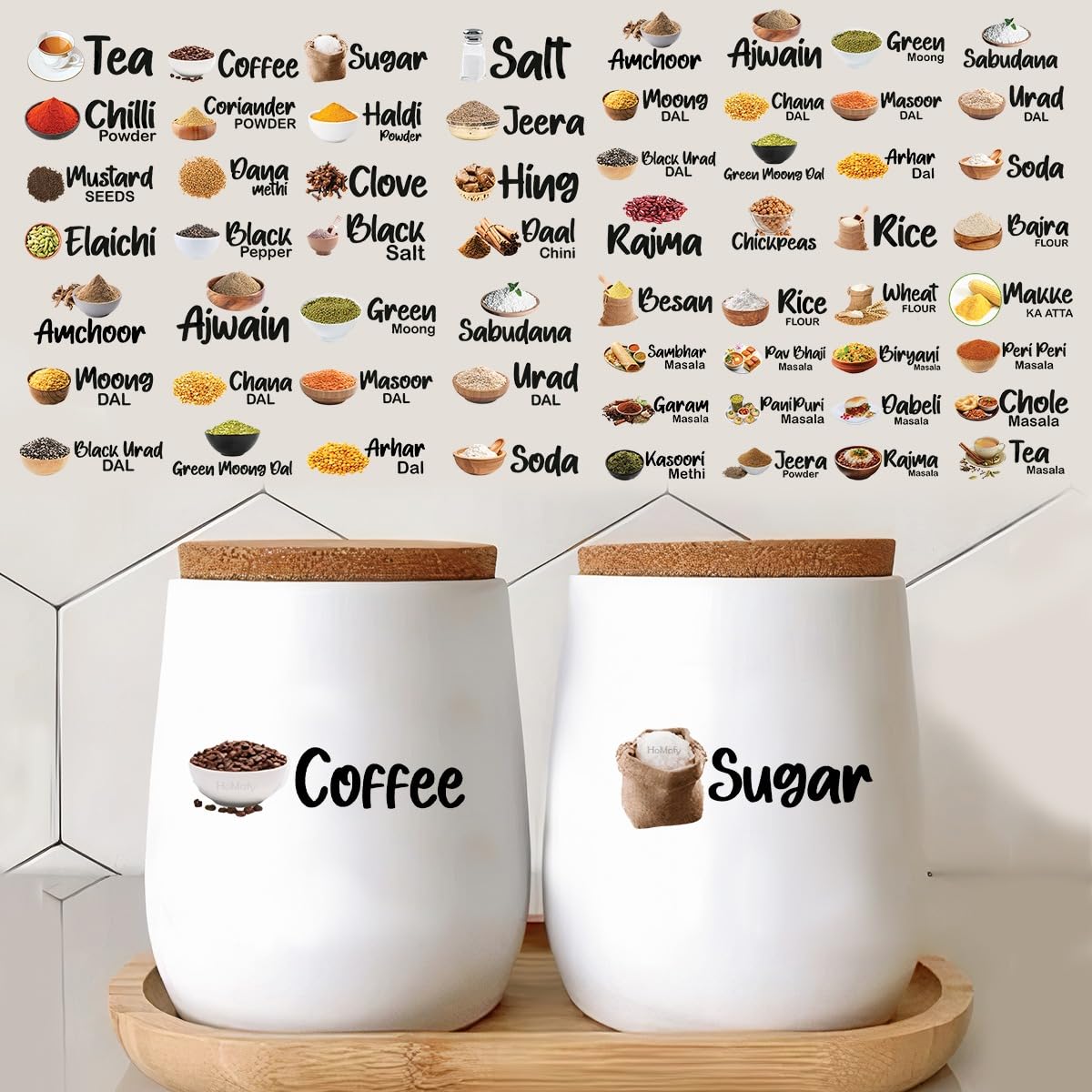 🗂️ Set of 40 Pre-Cut 3D Labels – Featuring commonly used kitchen names like Sugar, Salt, Coffee, Tea, Flour, Spices, and more – in both Hindi & English! 🇮🇳📝