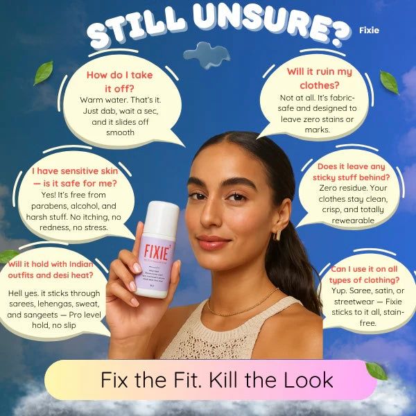 Discover the body adhesive that adjusts your outfit to your body — no slips, no stress. Whether you're wearing off-shoulders, sarees, or slitted dresses, Fixie Body Adhesive Roller keeps everything comfortably in place, all day long.
