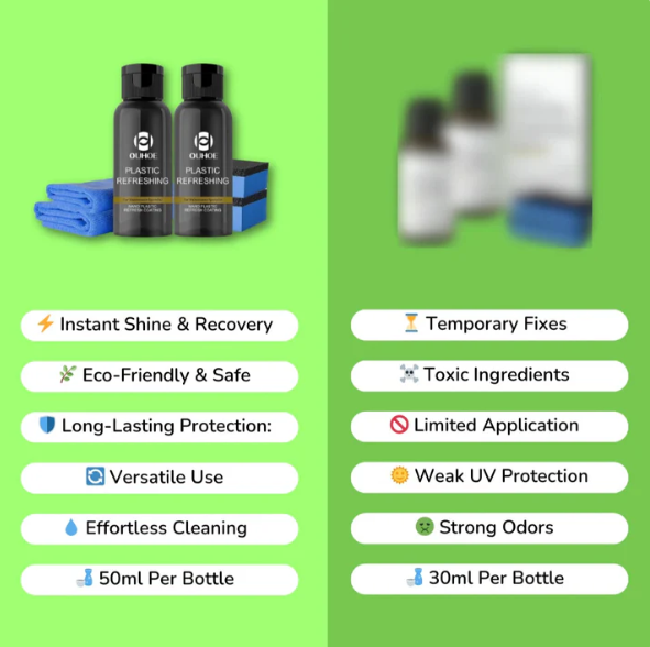 ✨Effective Restoration & Refresh in minutes plastic repair agent can be used for a long time! You'll be amazed by even the toughest car wash and the worst rain and snow!