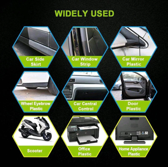 Repair and restore the fading surfaces and rims of your car! Enjoy the brilliance and shine with our Plastic Revitalizing Coating Agent! A perfect solution to bring back the natural look of your vehicle's exterior rims and plastic surfaces with less effort!